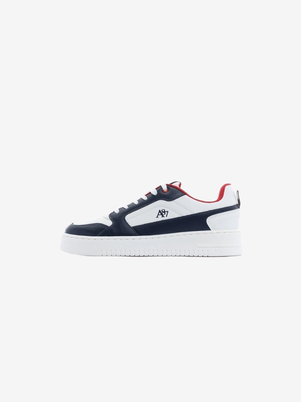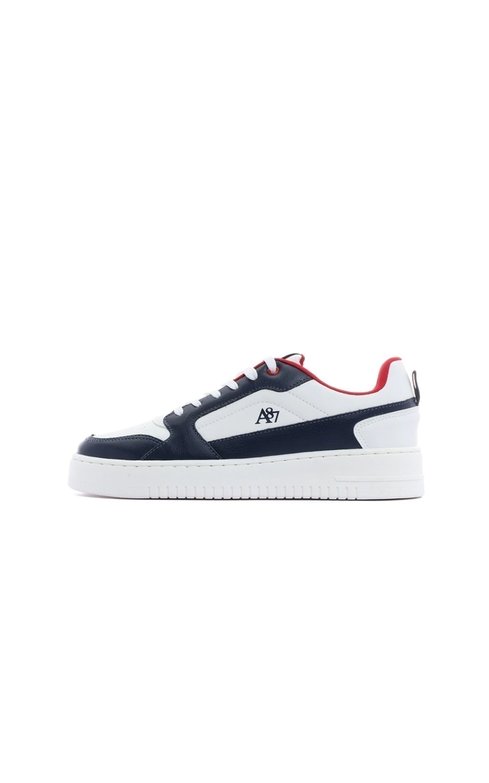 Tênis masculino Aeropostale na cor branca com detalhes em azul e vermelho.