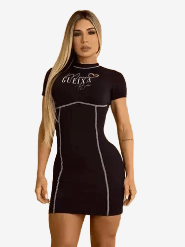 Vestido feminino Maria Gueixa na cor preta, modelo curto e ajustado ao corpo.